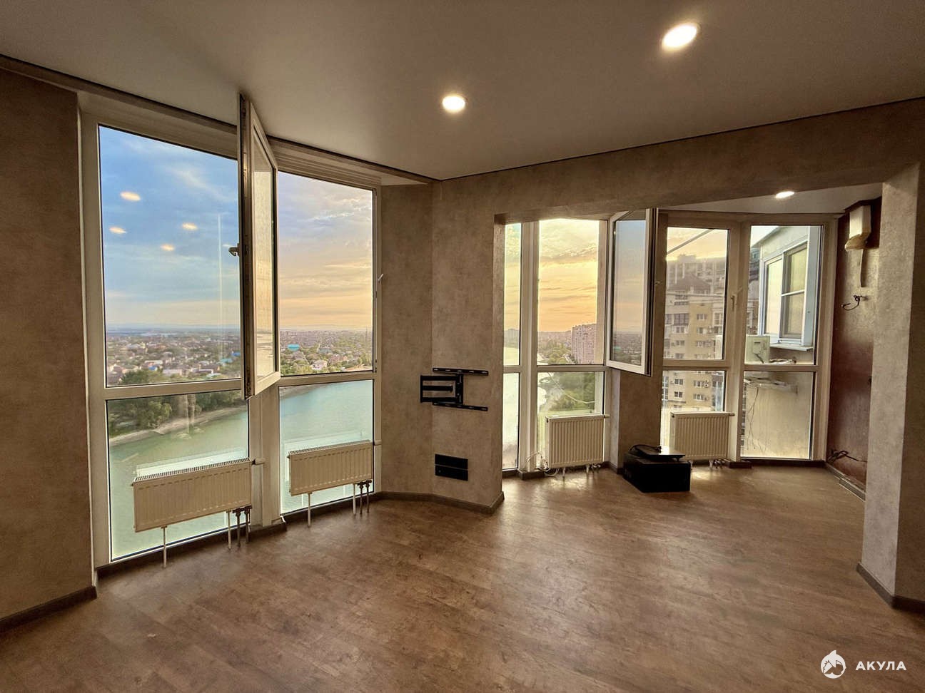 Просторная планировка с шикарными видами на реку и город.