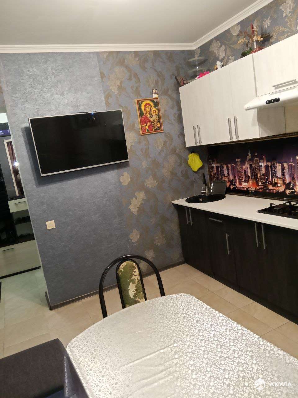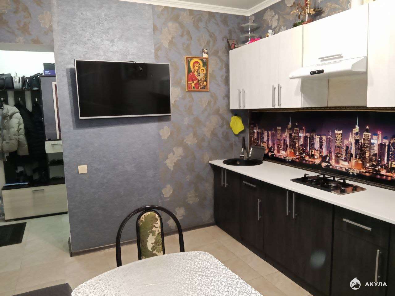 Дополнительные удобства: Надёжная входная дверь. Меблированная кухня с встроенной техникой, уютная спальня, прихожая