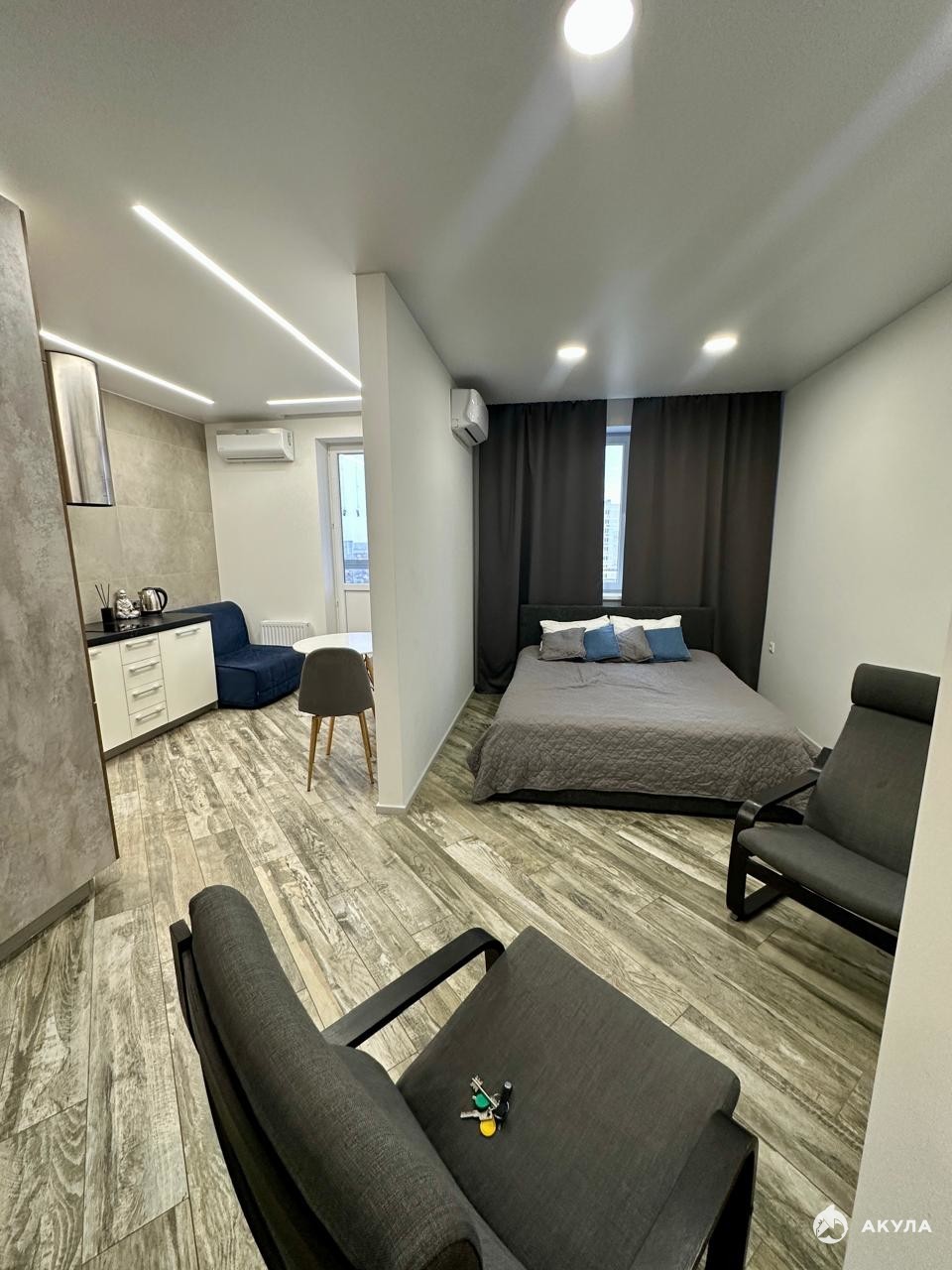 - жилая зона - 22 кв.м, кухня - 8 кв.м