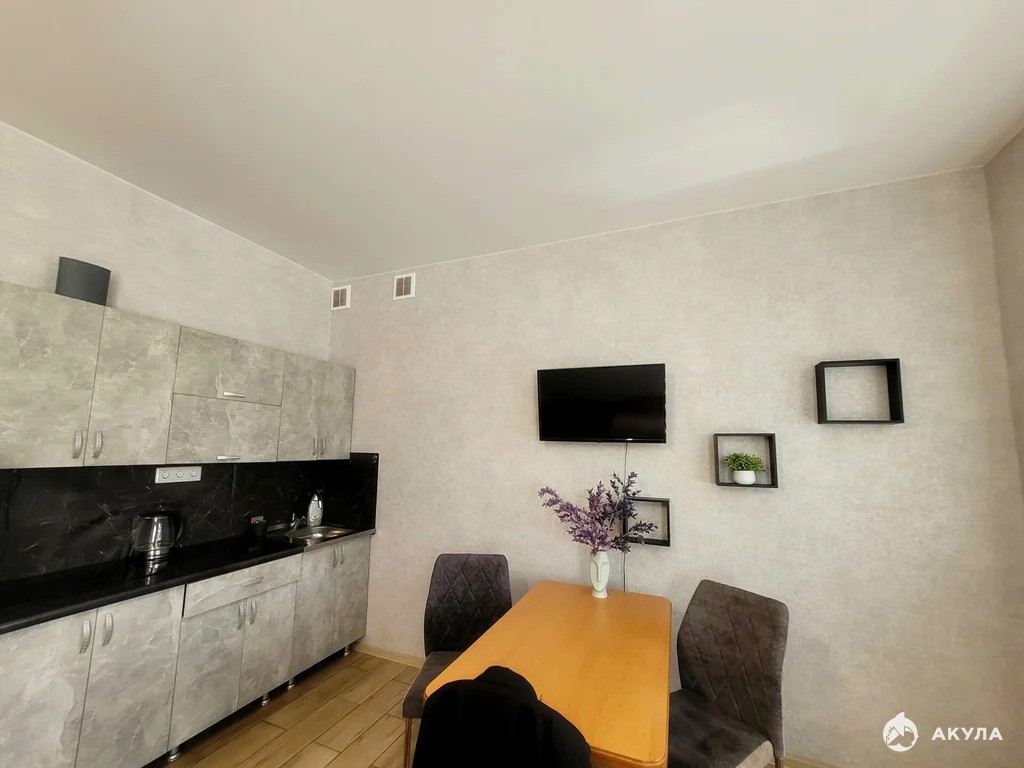 В квартире выполнен косметический ремонт, вся мебель остается новый владельцам, заходи и живи. Есть выход на балкон с видом во двор. Окна металлопластиковые, установлены электро радиаторы, кондиционер и бойлер. Санузел совместный, выложенный плиткой. Теплый пол в санузле, коридорной части и в зоне кухни. Квартира очень компактная и удобная, все зоны смотрятся гармонично, при этом остается свободное пространство.