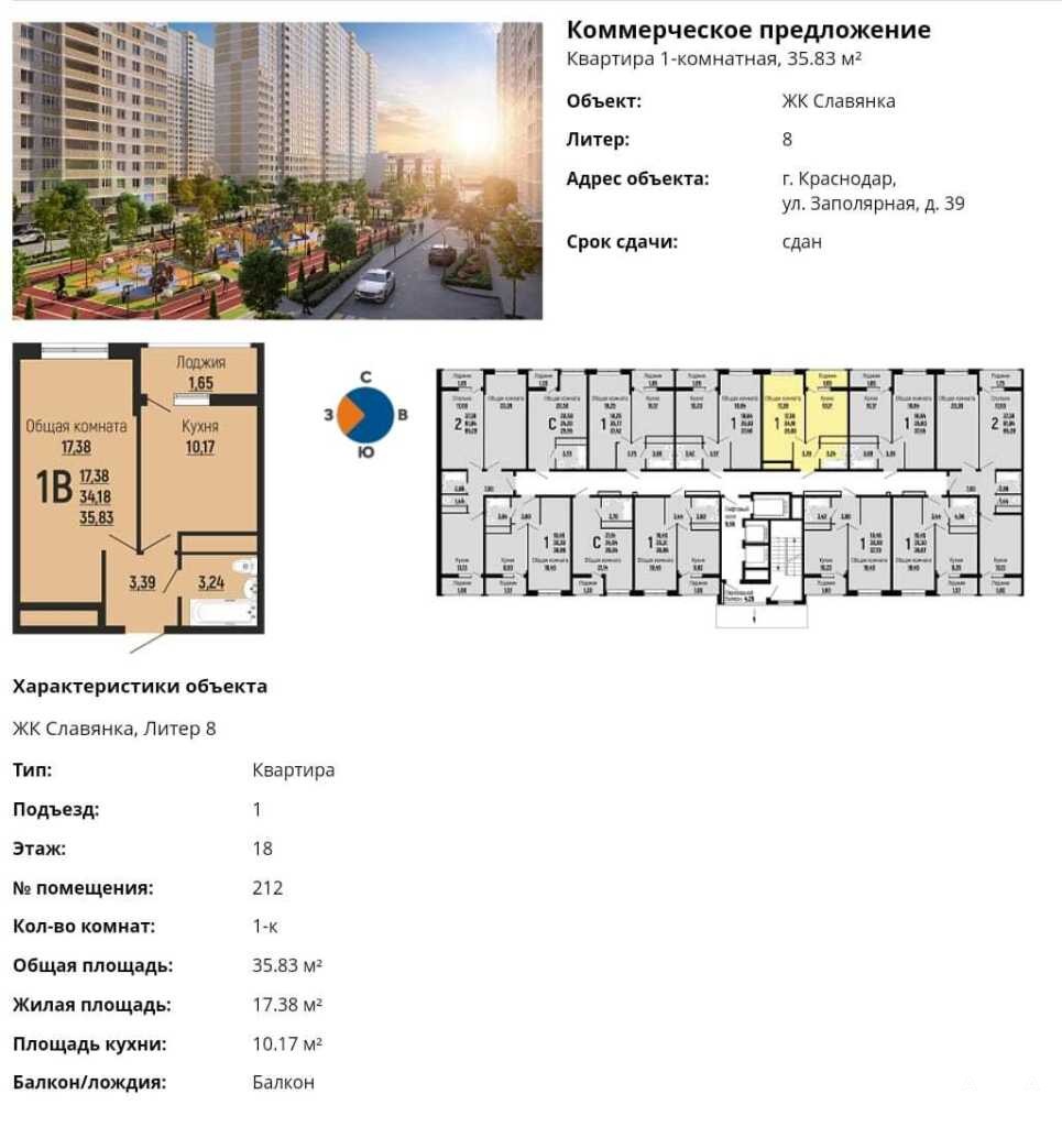 Арт. 84454422. Продаю 1-комнатную квартиру в ЖК «Славянка» дом 39, корп.8. Дом сдан.