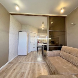 Продаю уютную 1к квартиру в жилом комплексе «Время». Закрытый двор и наличие подземной парковки, через которую можно, не выходя на улицу попасть в «Пятерочку» и БЦ «Время». В квартире сделан современный ремонт, на стене под телевизор установлена декоративная панель из...