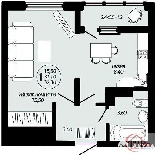 &9642; Кухня-гостиная — 8, 4 м2