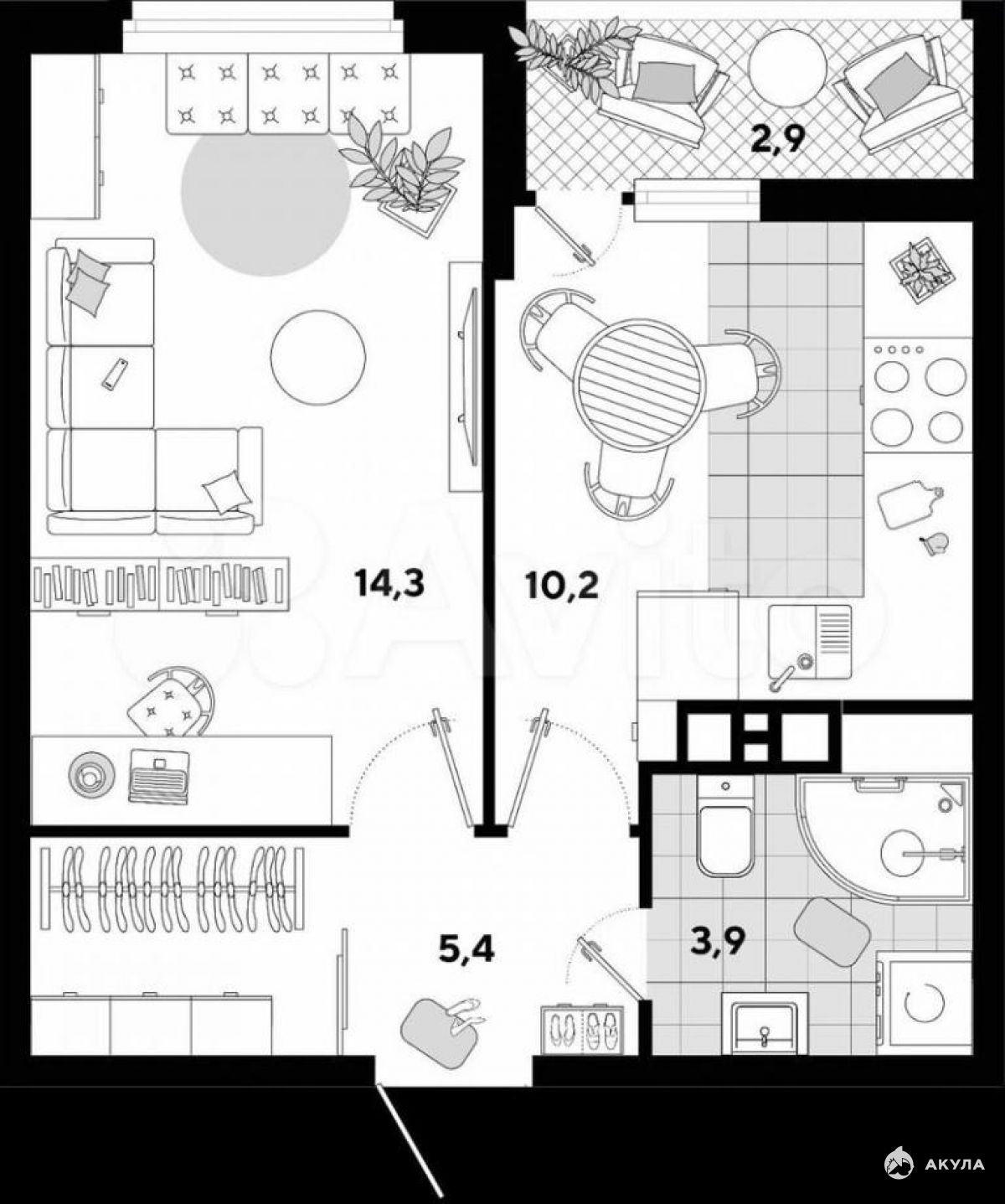 - 14.30 м²