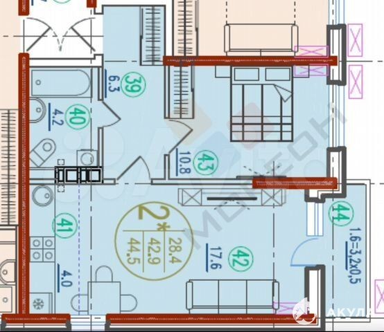 - 43 м²
