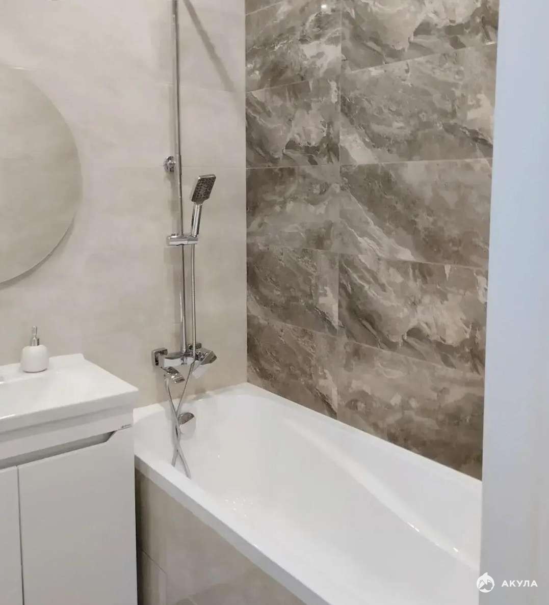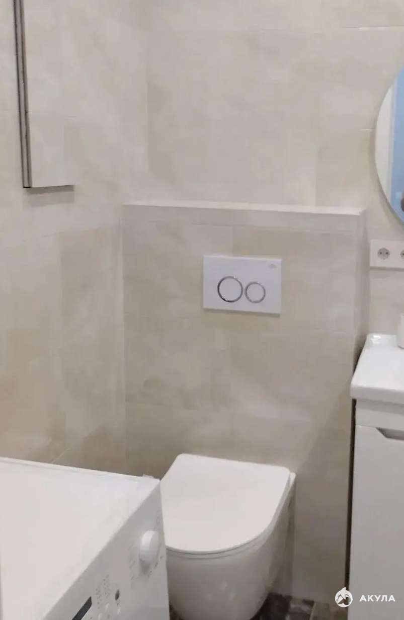 Санузел совмещенный, отделан плиткой. Установлена инсталляция.