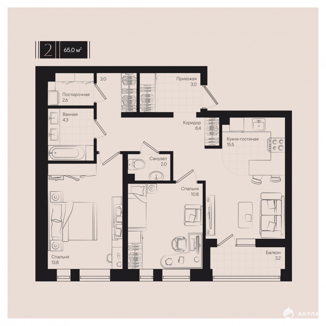 - 65 м²
