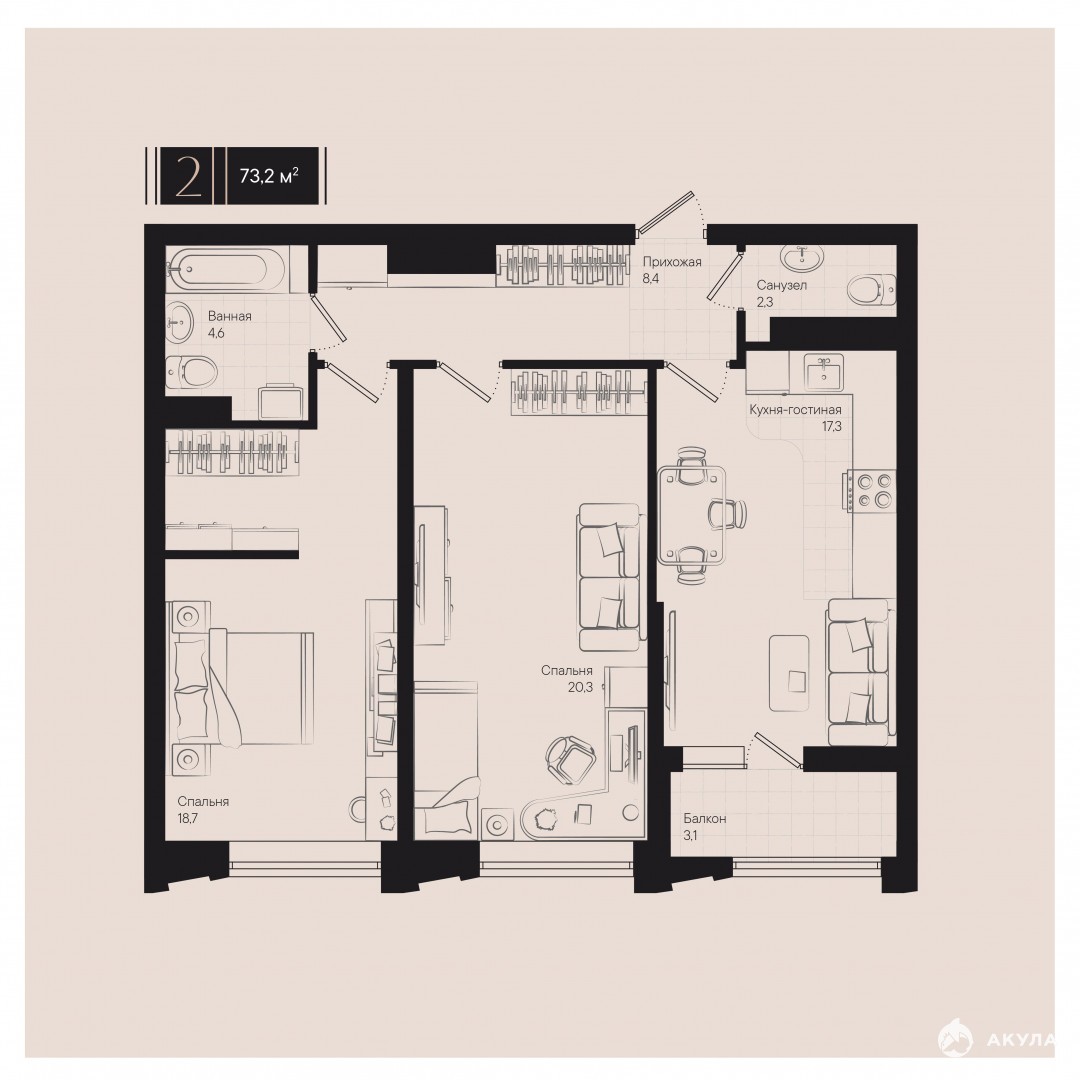 - 73 м²