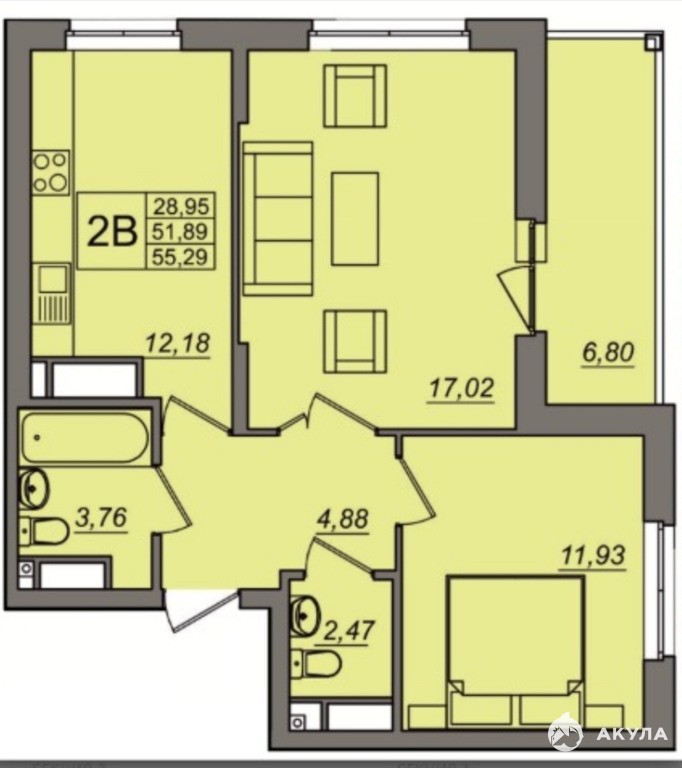 - 28.95 м²