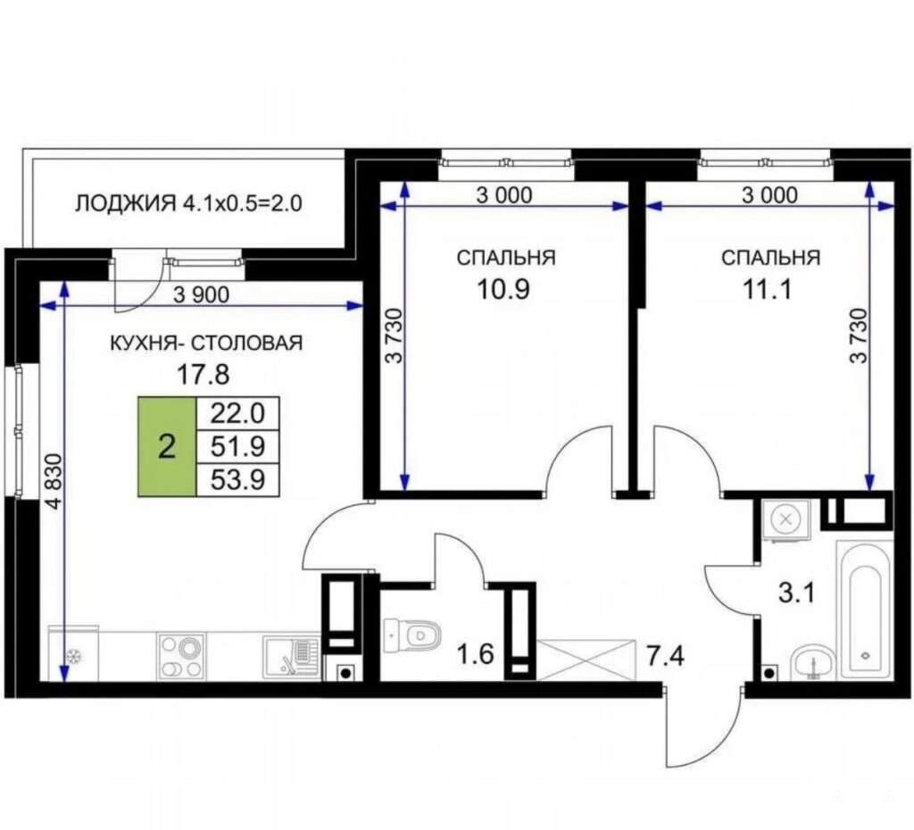 - 22 м²