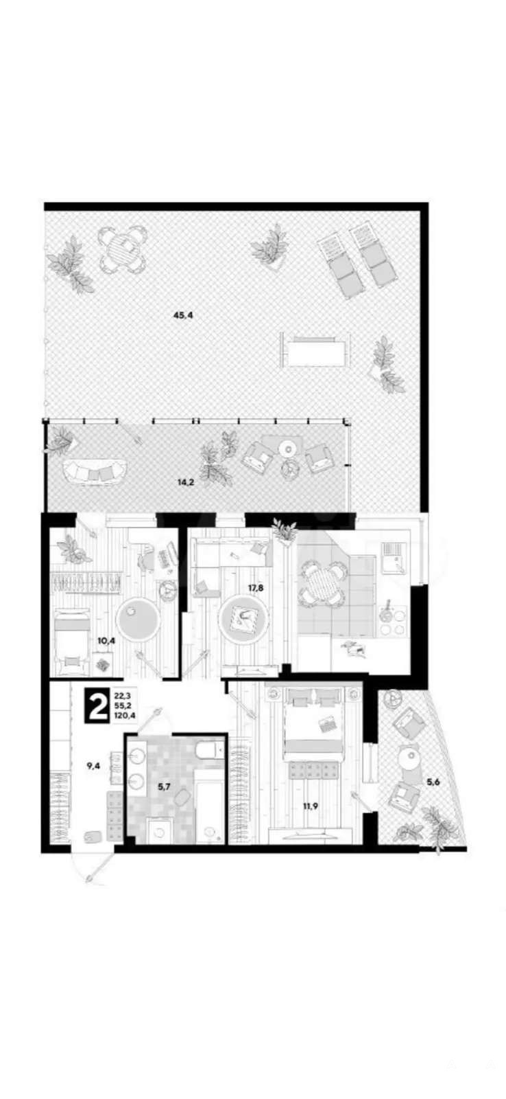 ОБЩАЯ ПЛОЩАДЬ КВАРТИРЫ с учетом веранды - 120 кв.м. Никто не прописан. За дополнительную стоимость можно приобрести несколько машиномест в охраняемом паркинге во дворе напротив входа в подъезд.