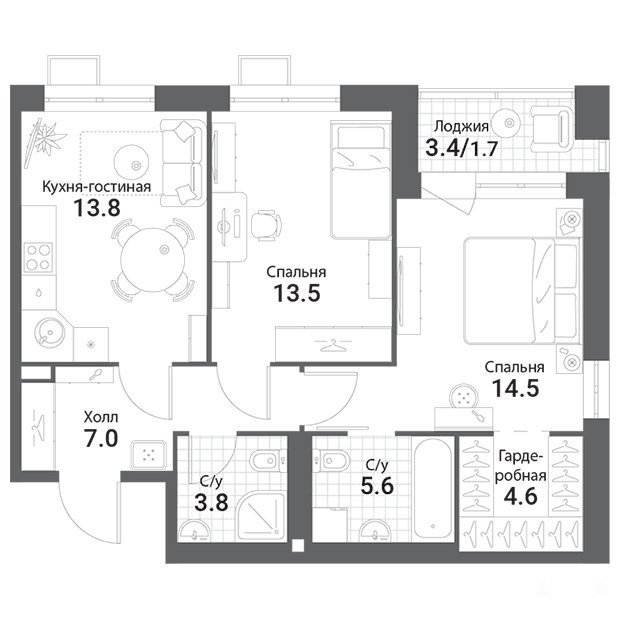 - 13.80 м²