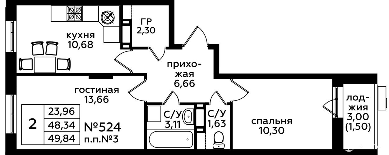 - 23.96 м²