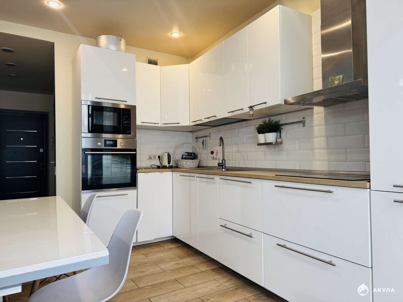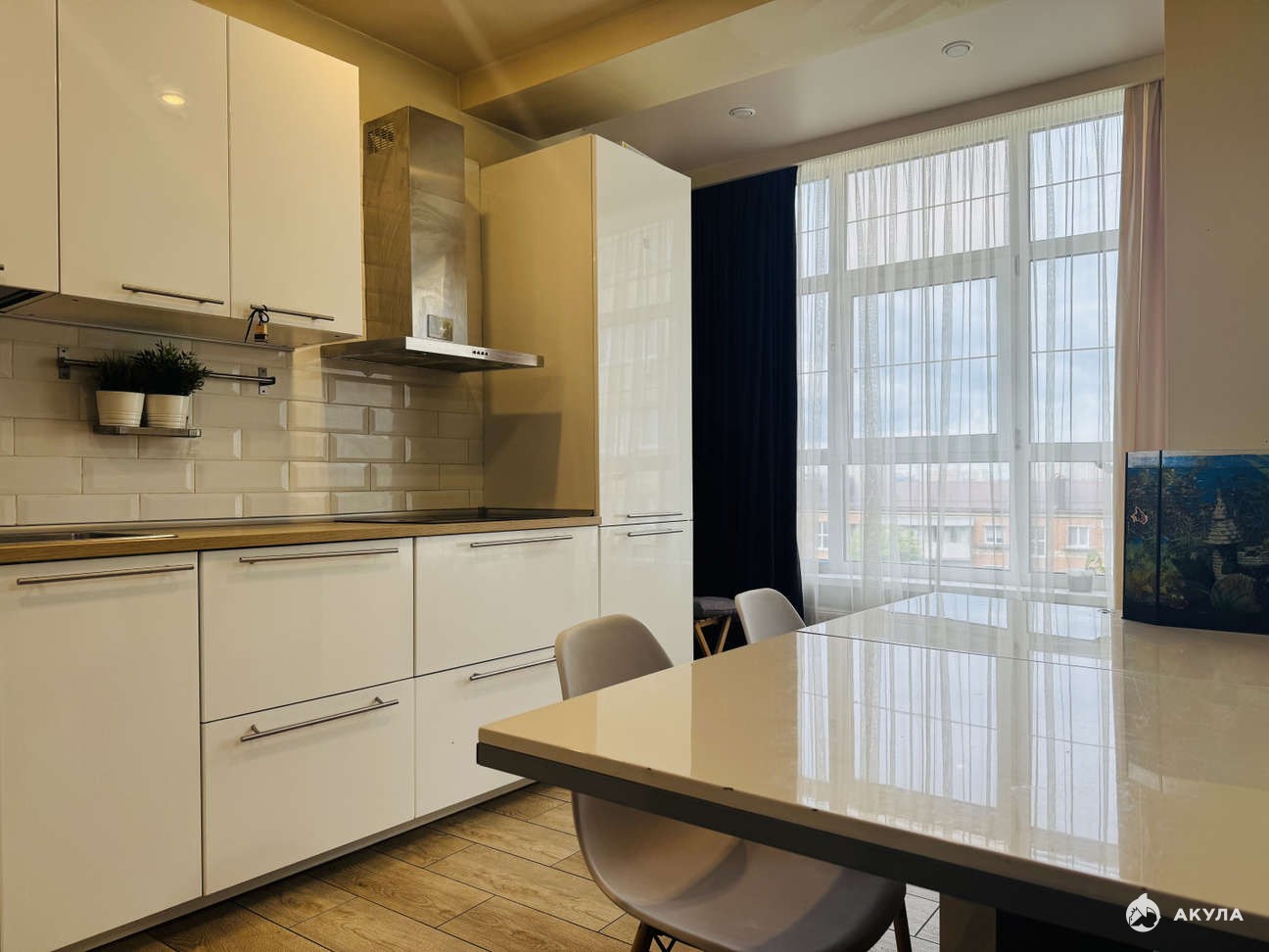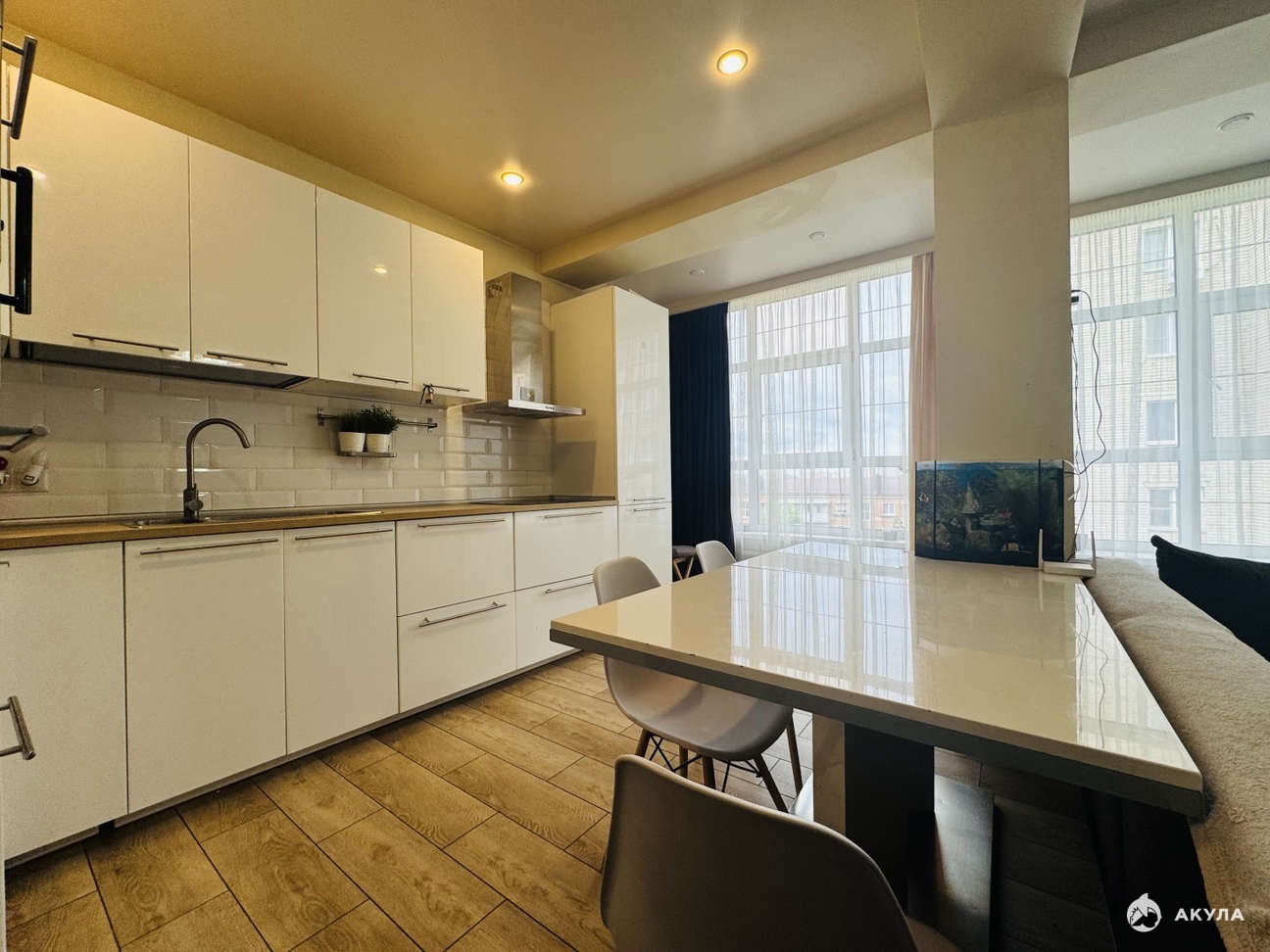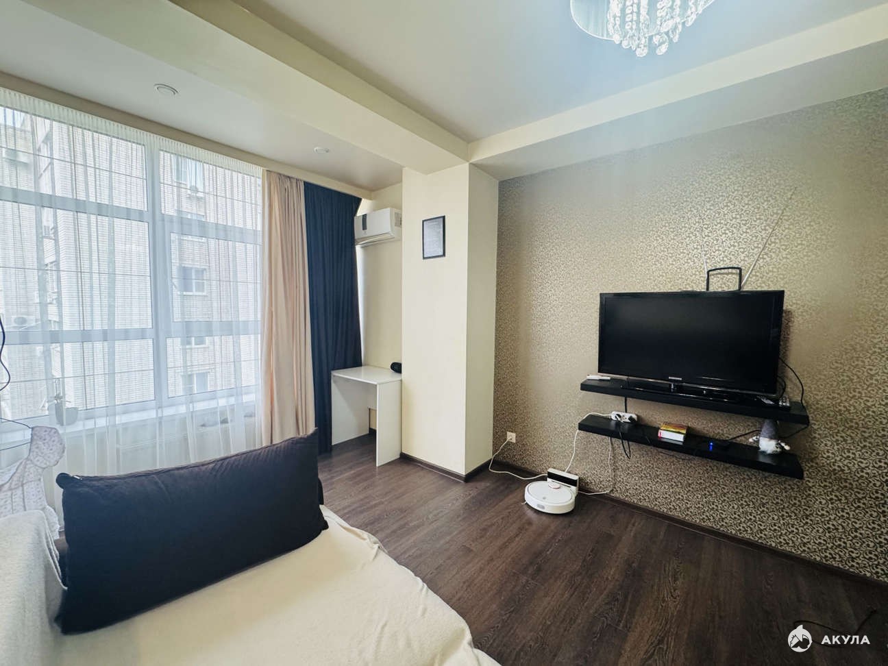 В квapтиpe выполнeн coвремeнный peмонт в cветлыx тонах, местами нужно освежить обои.