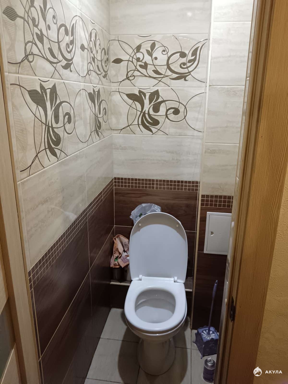 В санузле вся сантехника в хорошем состоянии. Есть место для хранения бытовой химии, полотенцесушитель.