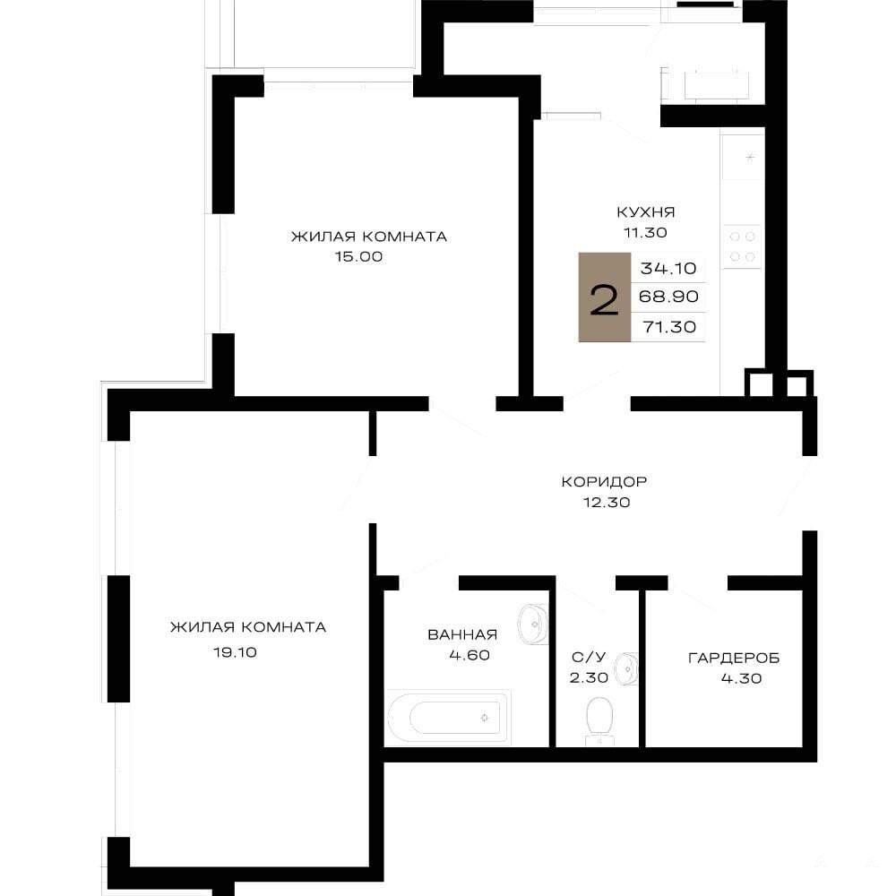 - 69 м²