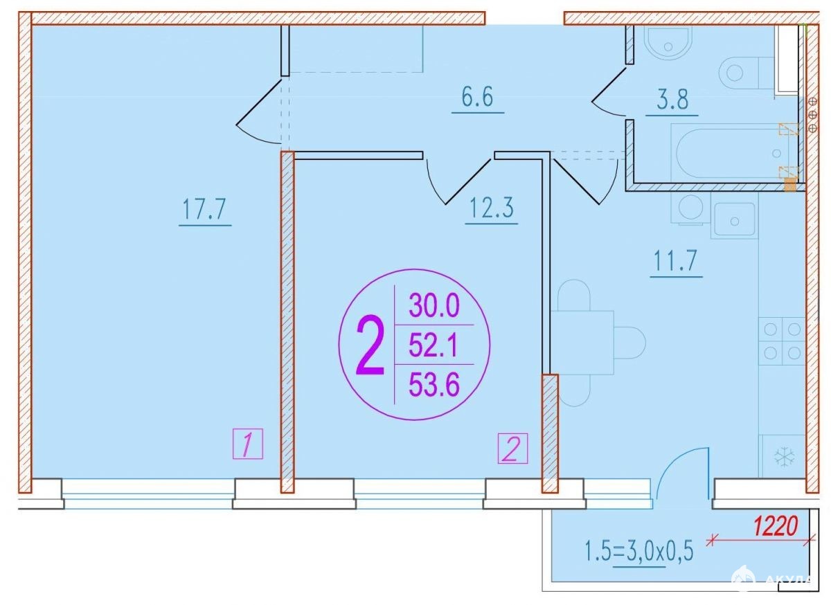 - 54 м²