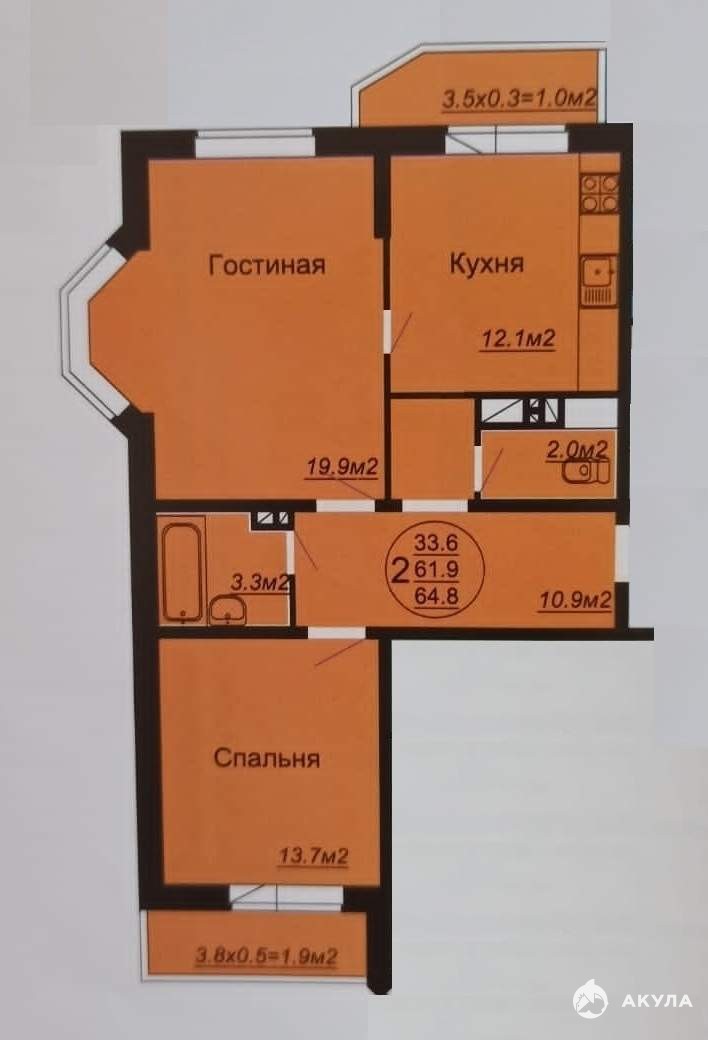 - 33.6 м²