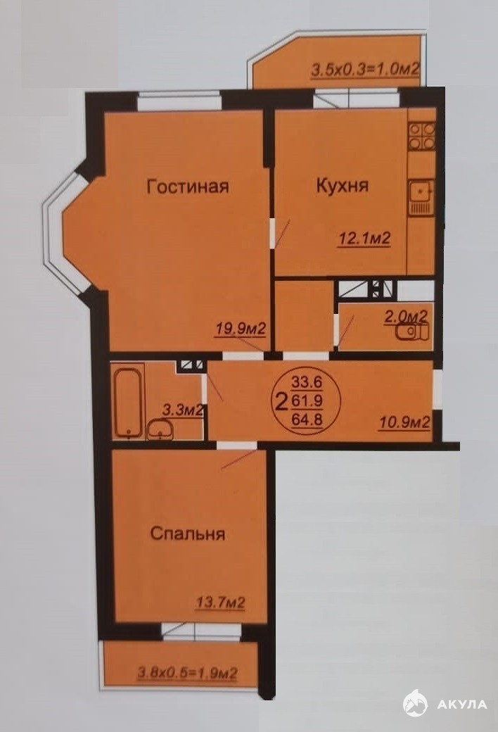 - 62 м²
