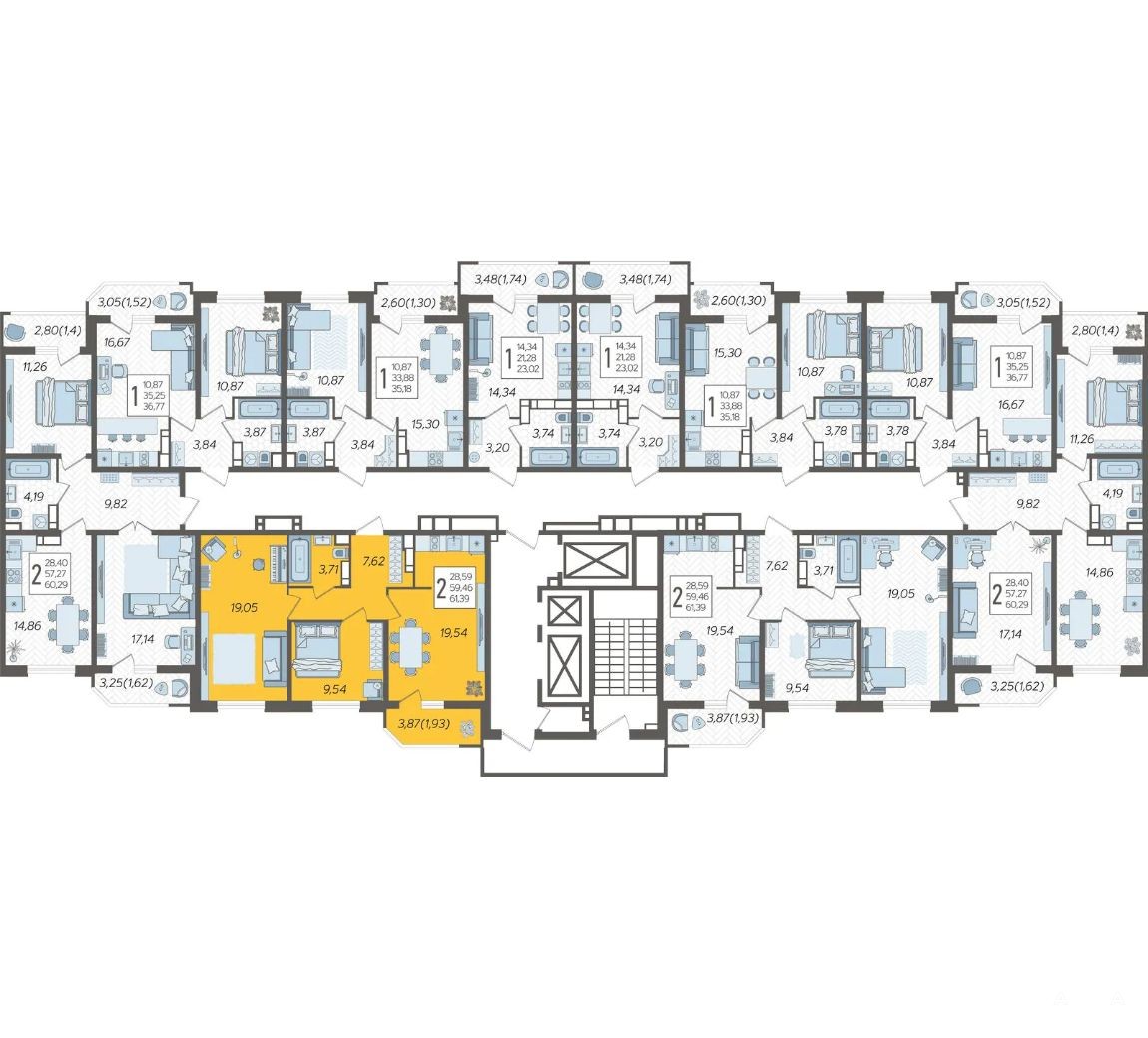 Продаётся 2-комнатная квартира в строящемся доме (Дом Литер 1), срок сдачи: 1 кв. 2025, общей площадью 61.39 кв.м., на 22 этаже. Без отделки, но с возможностью заказать отделку