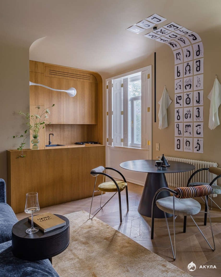 Высота потолков 3 метра, большие окна.