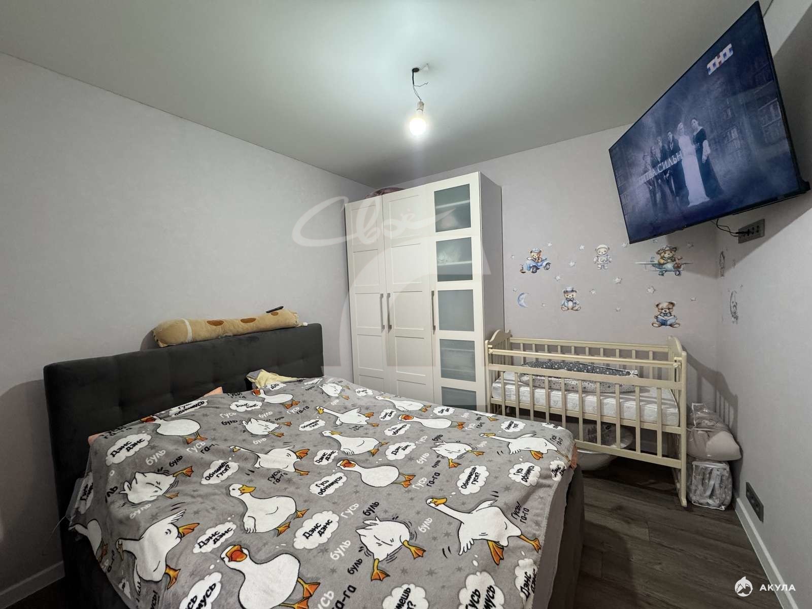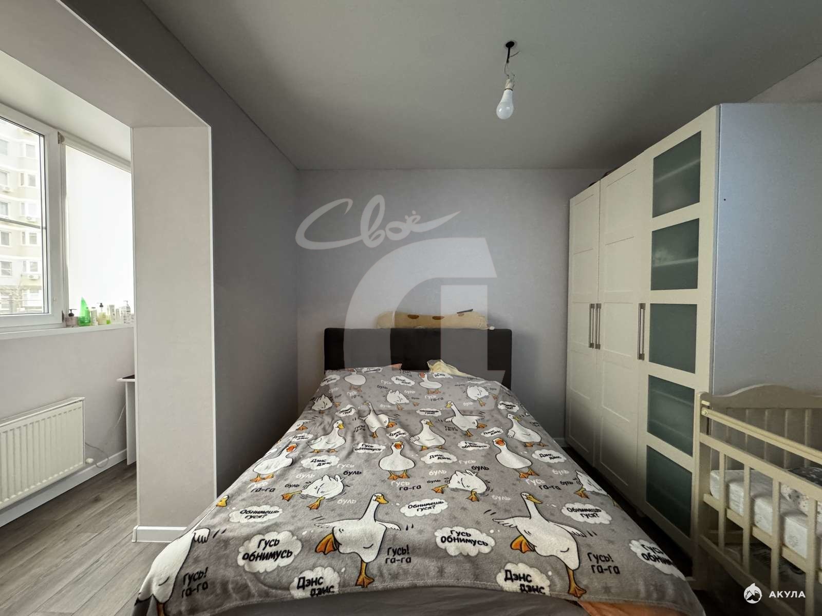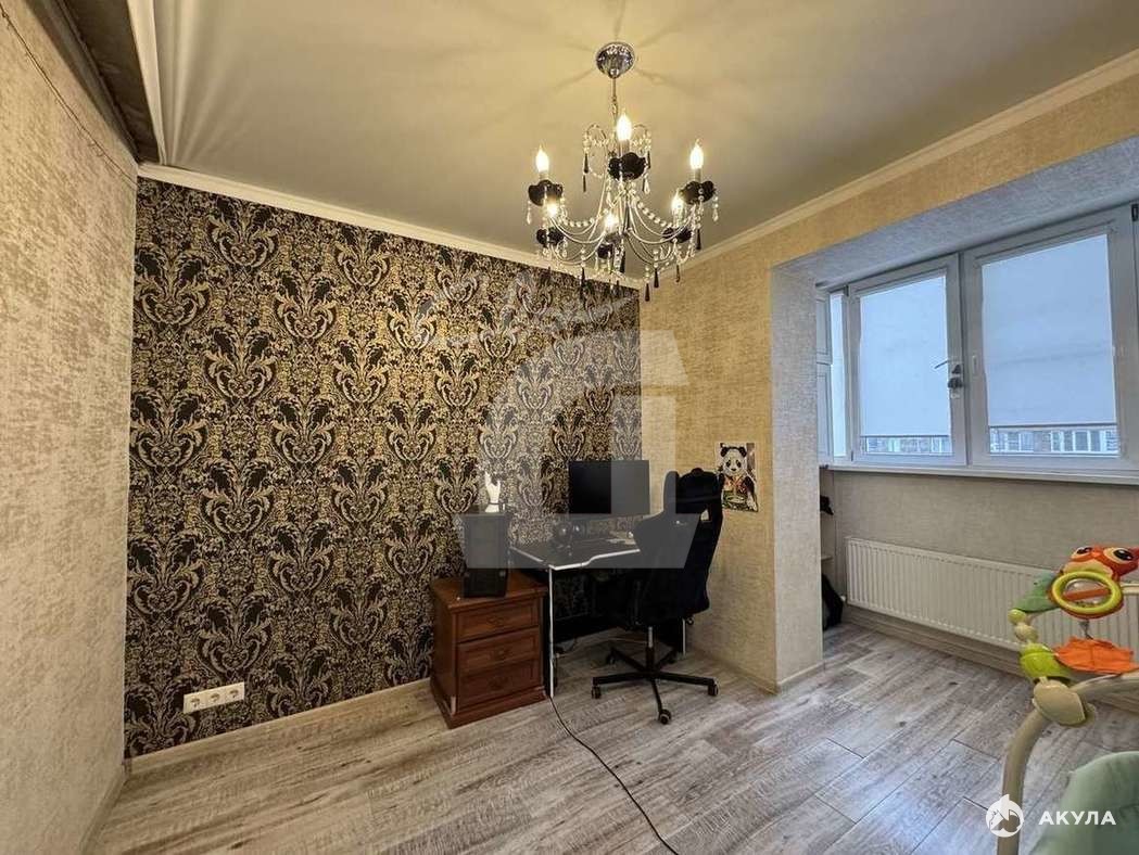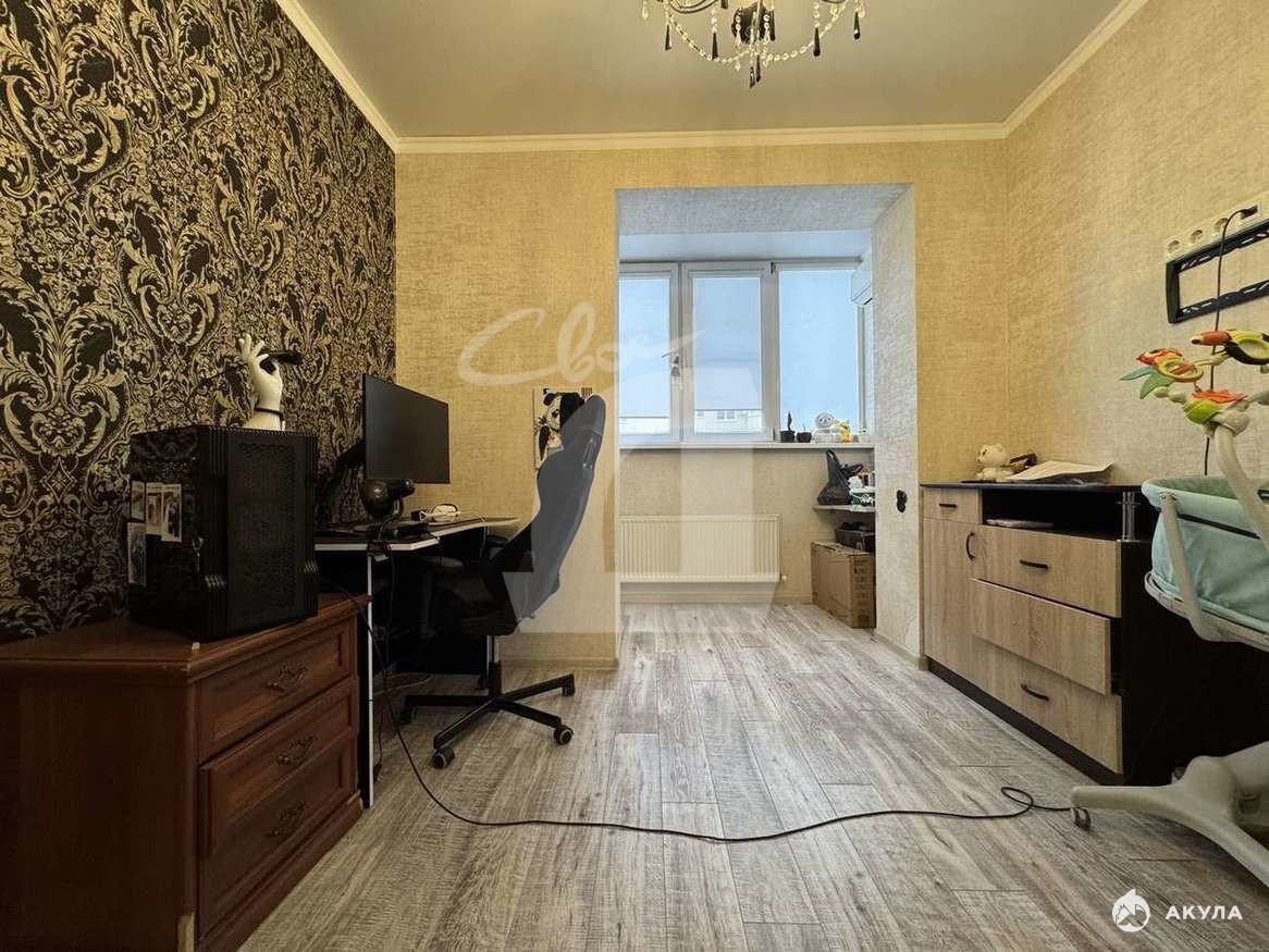 Две спальни, из одной, сделали кабинет. Под квартирой находится цокольное помещение канц. товаров, так же в нашей собственности.