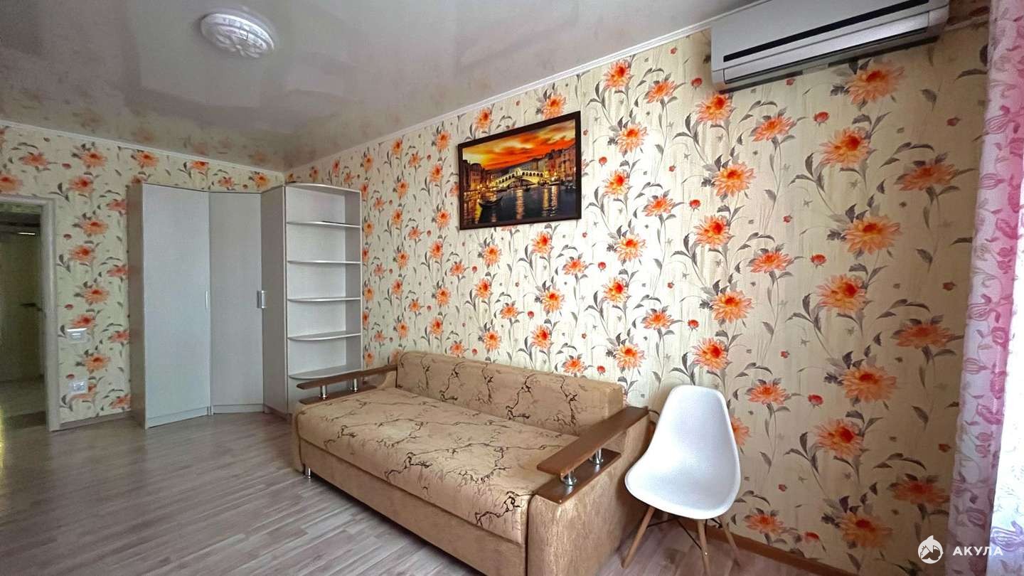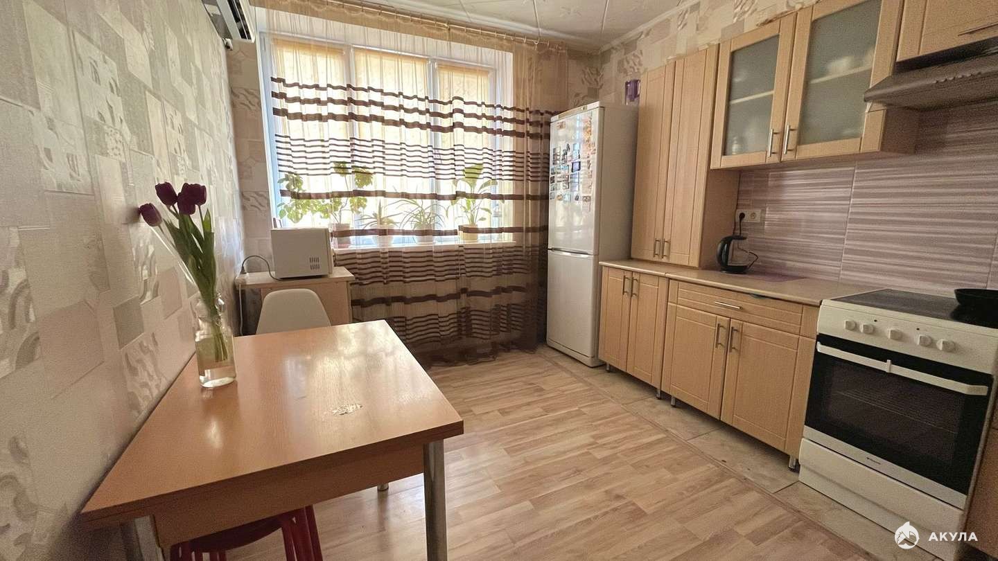 Двухкомнатная квартира 58 кв.м на 1 этаже 7-этажного дома. Две изолированные комнаты (жилая площадь - 26 кв.м), планировка «бабочка», кухня - 11, 8 кв.м, совмещённый санузел, застеклённый балкон. Состояние - хорошее. Остаётся вся мебель и бытовая техника. Установлены стеклопакеты.