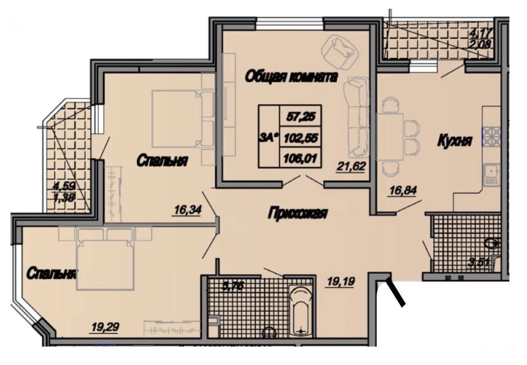 - общая площадь 110 кв.м. в выписке из ЕГРН- 101, 1 кв.м. без учета лоджии и балкона