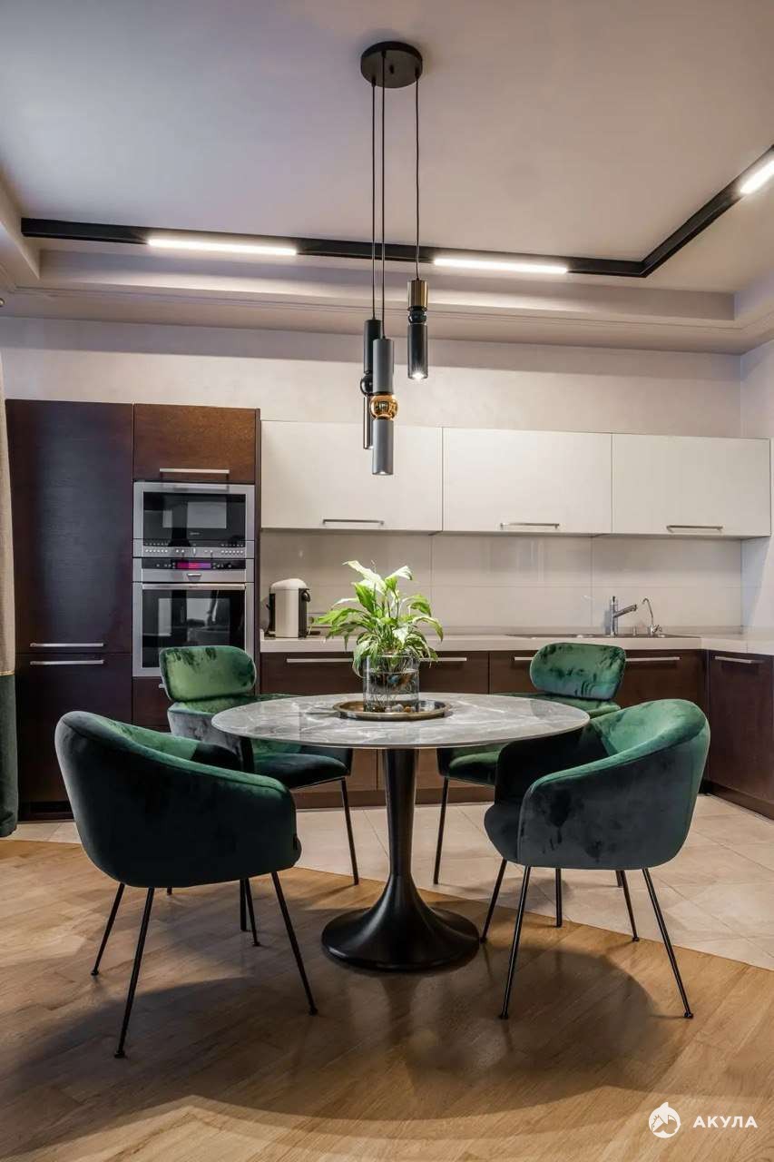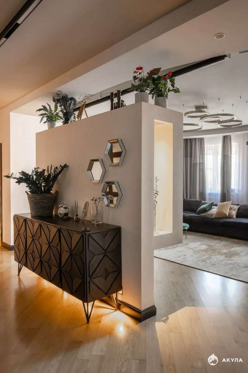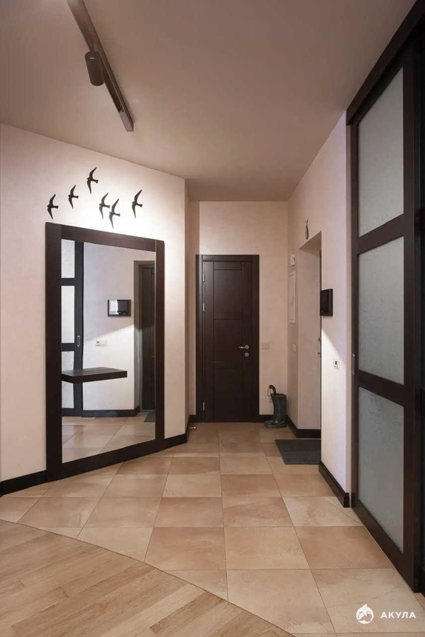 Квартира с дизайнерским ремонтом: итальянская шёлковая штукатурка, паркет из массива дуба, гипоаллергенные краски, скрытая подсветка SWG. Установлены климат-контроль Mitsubishi Electric, сантехника Hansgrohe, кондиционер. Встроены две гардеробные Mr.Doors и системы хранения.