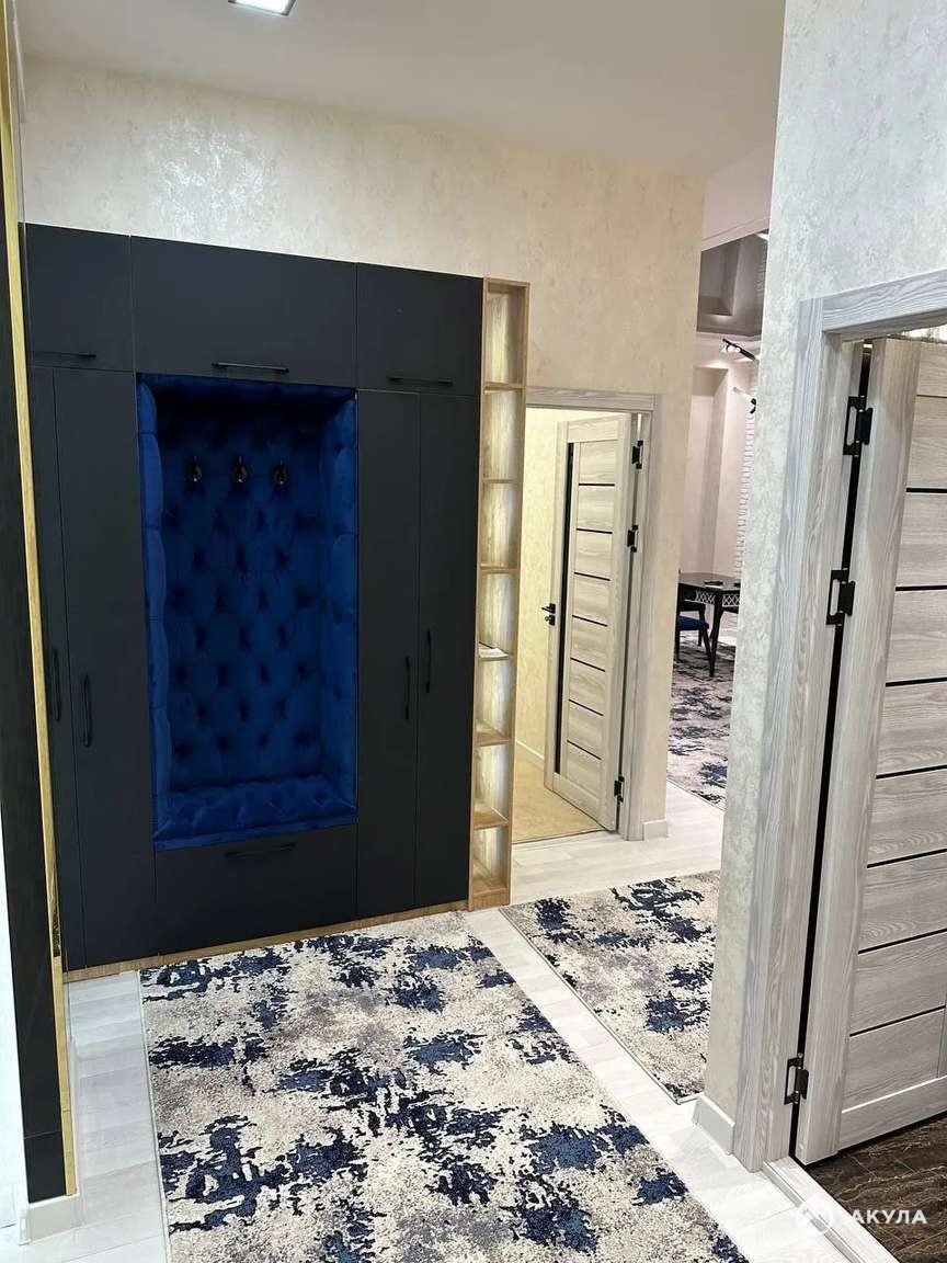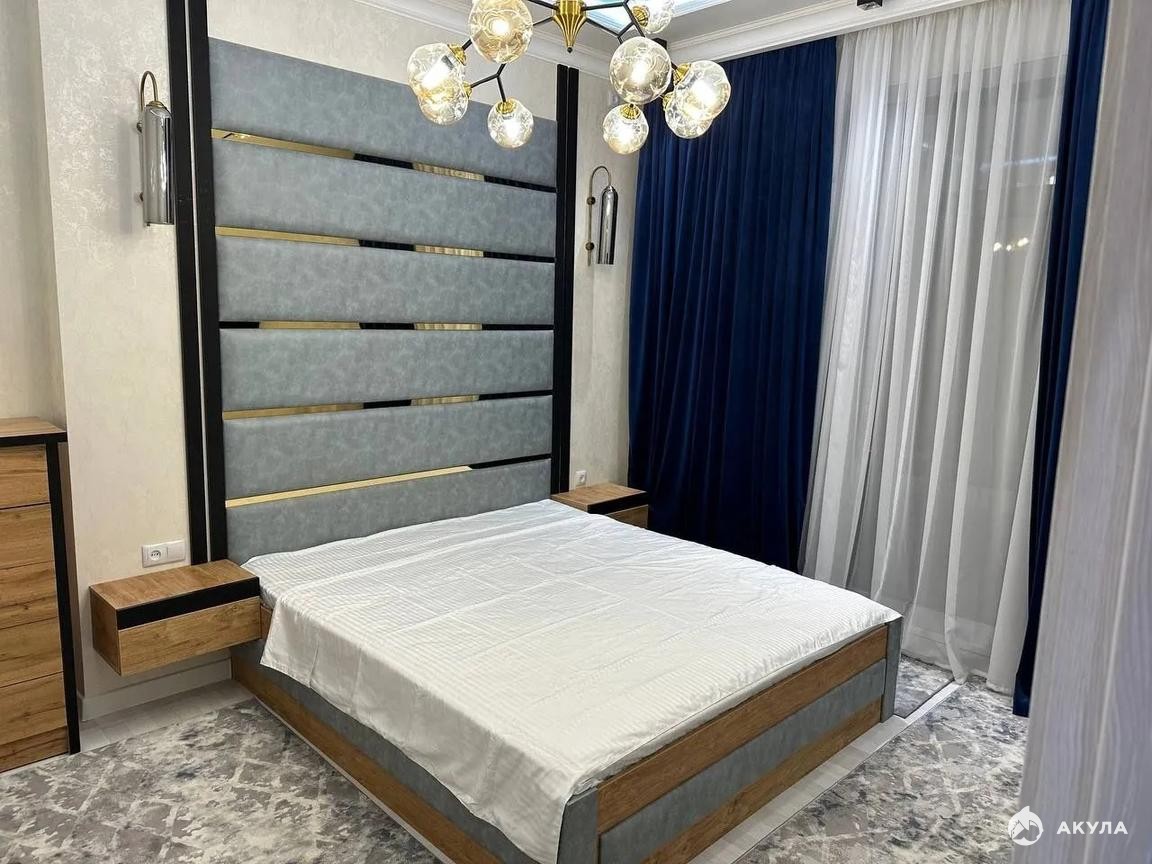 ?Сделан дизайнерский ремонт. 3 просторных продуманных для проживания комнаты. В главной спальне большая двухспальная кровать, прикроватные тумбы, комод.