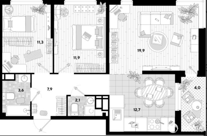 - 43.10 м²