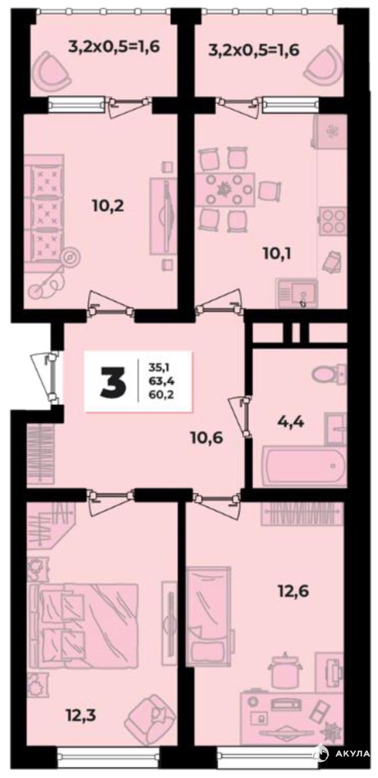 - 63 м²