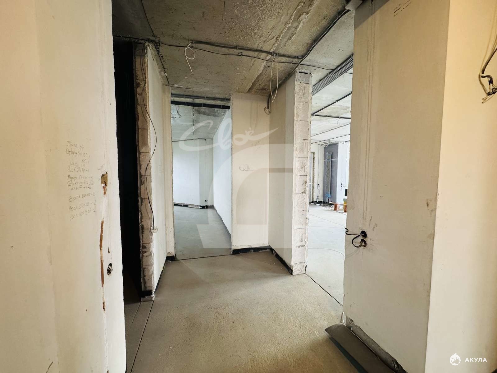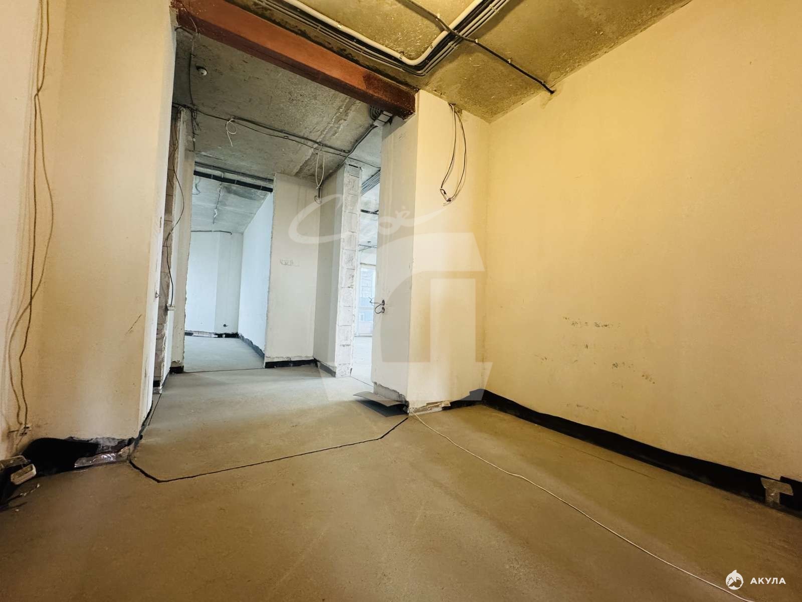 2. Демонтирована стяжка и штукатурка от застройщика. Сделана новая стяжка, гидроизоляция, 3 слоя шумоизоляции на полу и оштукатурены стены в геометрии (углы 90 градусов);