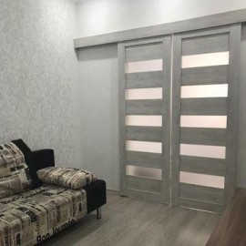 Квартира с новым ремонтом. Высота потолков 2, 8 м. Натяжные потолки, ламинат, плитка в ванной. Хорошая входная дверь. Комната разделена на 2 зоны раздвижными дверями: спальня и гостиная. Удобно для семьи с детьми (в маленькой комнате поместится софа, письменный стол и комод)....
