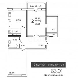 СЕМЕЙНАЯ и ГОСПОДДЕРЖКА!!!! ЦМР!!! Лучшее предложение на рынке для ЦМР г. Краснодара. Дом блочный, сдан в 2022 г. Идеальная предчистовая отделка. Проводка проведена по всей квартире. Квартира 2-х комнатная общей площадью 63, 91 м2, балкон 3, 4 м2, не остеклен, гардеробная 5, 0 м2. Дом...