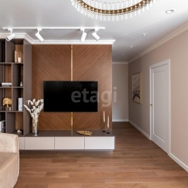 дорогих отделочных материалов, светотехники и керамики. Сделана шумоизоляция всех стен. Три спальных комнаты, в каждой комнате индивидуальные гардеробные ( установлены полки с ящиками). Два санузла. Просторная кухня-гостиная. Кухонный гарнитур сделана под заказ....