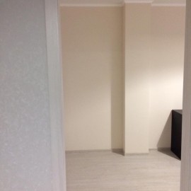 Светлая квартира. Новая. Только сделали ремонт. Панорамные окна до пола. Поставив одну стенку-можно сделать двухкомнатную квартиру, вариант планировки есть в фотографиях. Никто не жил. Рядом муниципальная школа №99 и новая школа на 1100 мест, муниципальный детский садик...
