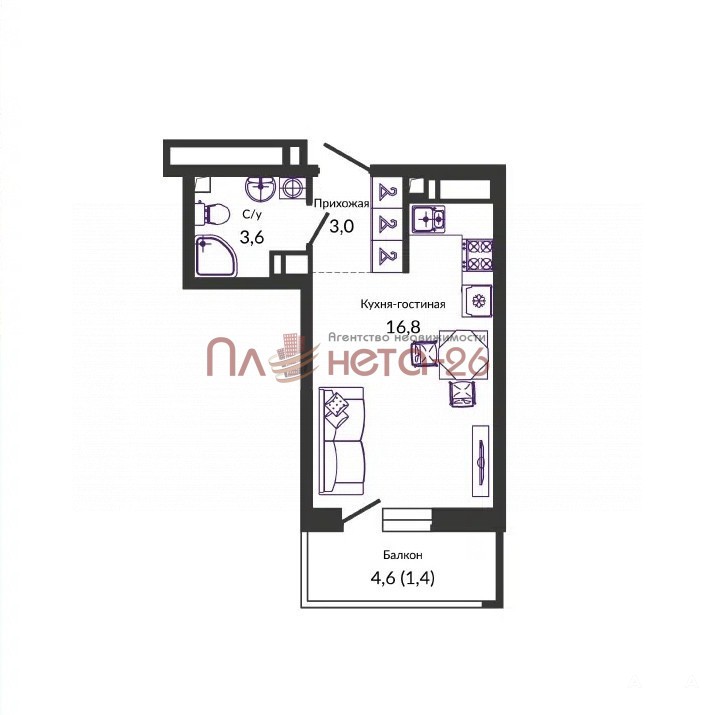 - 12.8 м²