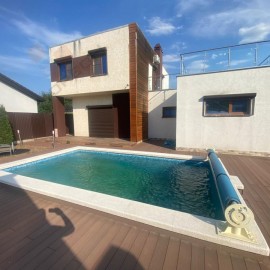 В продаже - прекрасный современный 2-хэтажный дом с эксплуатируемой кровлей!В доме выполнен дизайнерский ремонт, после которого никто не жил! Вся мебель и техника - остаются новому владельцу.В доме огромная кухня-гостиная (50 м2), кабинет, две спальни, два санузла (ванная...