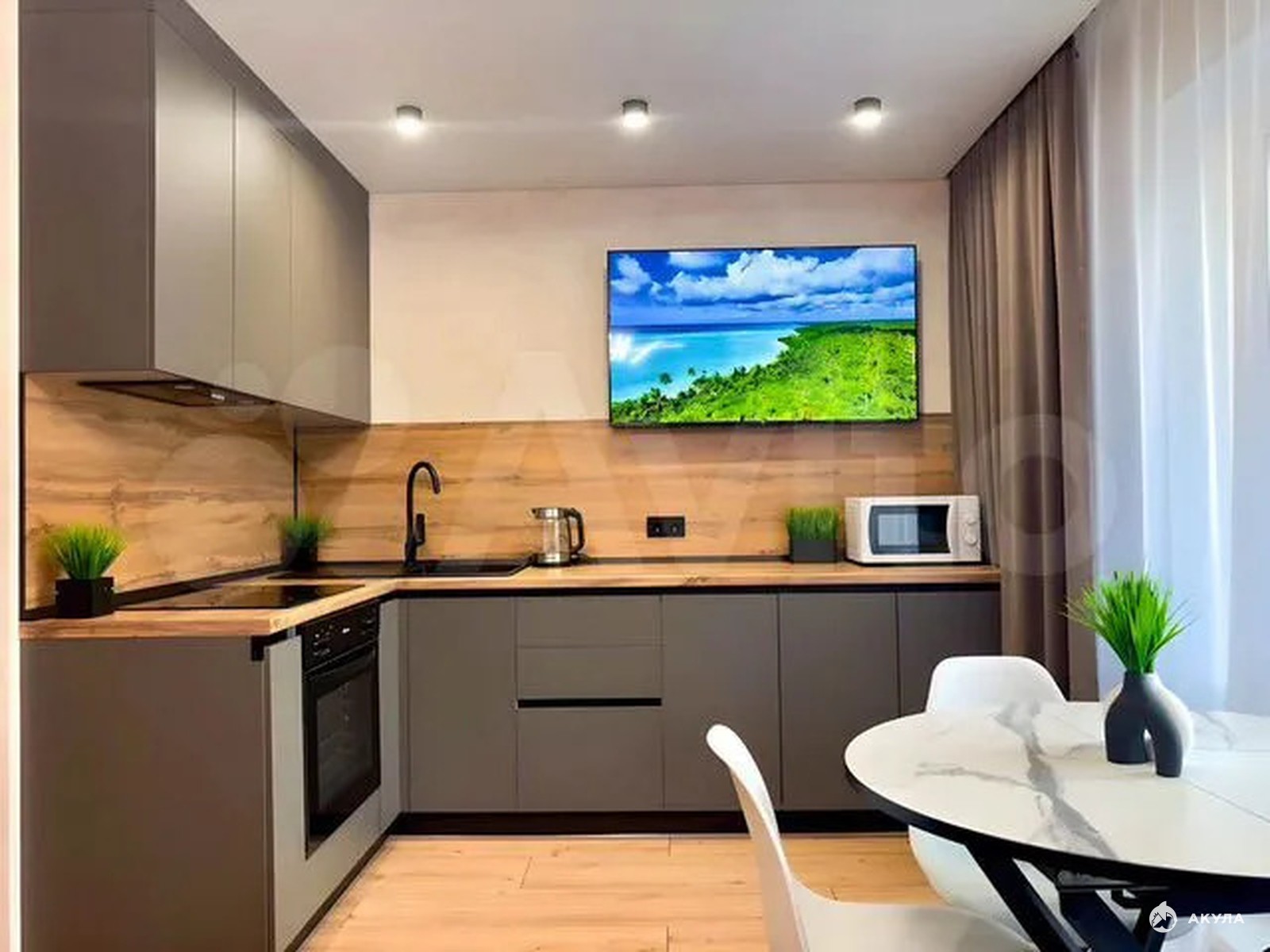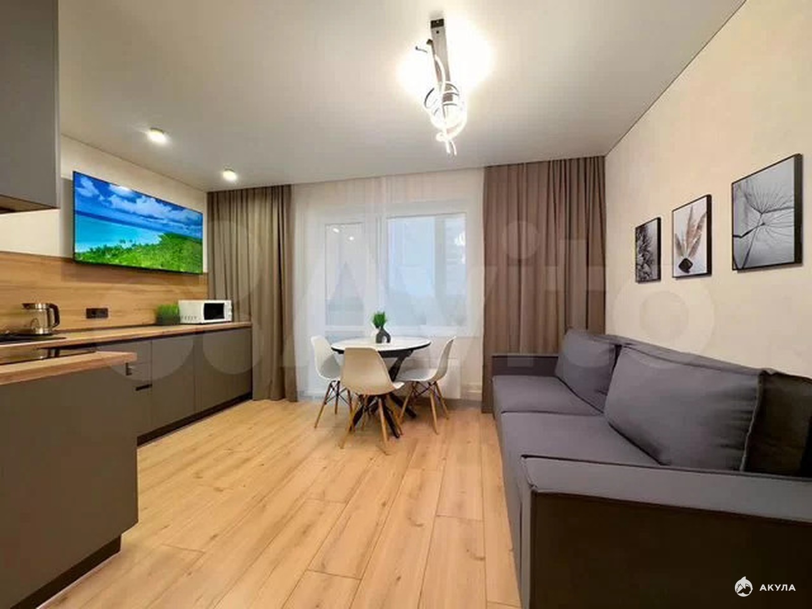 В квартире есть все необходимое для комфортного проживания: удобная мебель, функциональный кухонный гарнитур, современная бытовая техника, включая холодильник, чайник, плиту и микроволновую печь. Высокоскоростной интернет и Wi-Fi обеспечат связь с внешним миром, а стиральная машина и утюг областьегчат быт. Наслаждайтесь просмотром любимых передач на SmartTV.