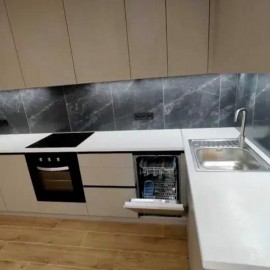 Благодаря большим окнам помещение обеспечивается естественным освещением. На кухне повешен турник, будет плюсом для любителей домашнего спорта. Здесь же духовой шкаф, микроволновая печь и смеситель с функцией лейки. Совмещается с залом. Телевизор подключен к...