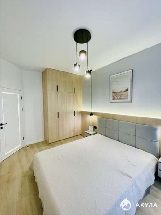 Квартира полностью укомплектована всей необходимой техникой: встроенная бытовая техника, стиральная и посудомоечная машины, кондиционер и телевизор. Особое внимание уделено системе хранения — здесь есть вместительная гардеробная, большой шкаф длиной 3, 5 м в прихожей, дополнительные шкафы в спальне и санузле.