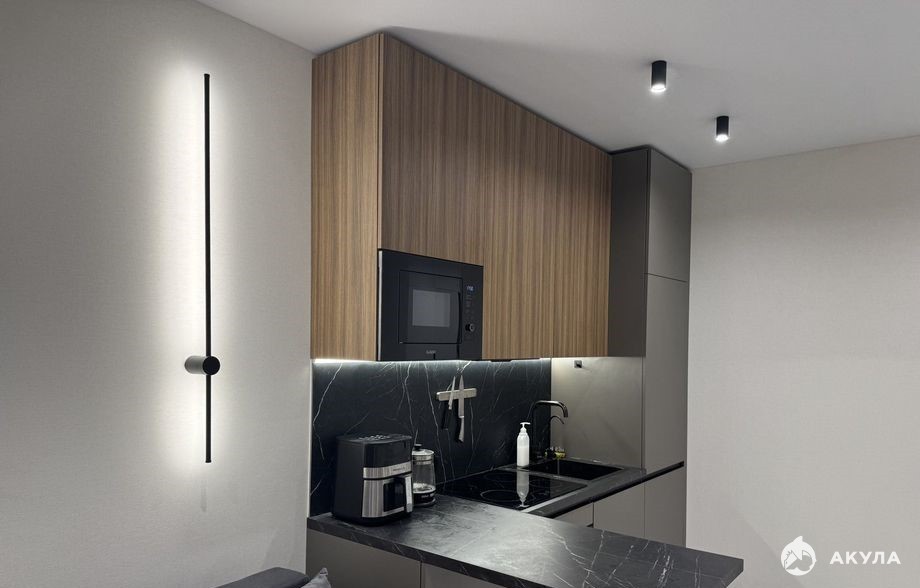 Сдается стильная квартира в стиле хай-тек с контрастными сочетаниями дерева, гранита и черного с белым.