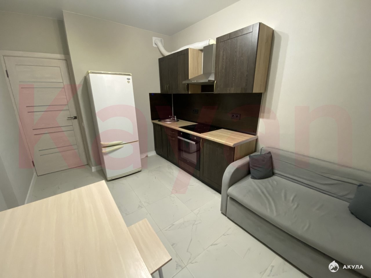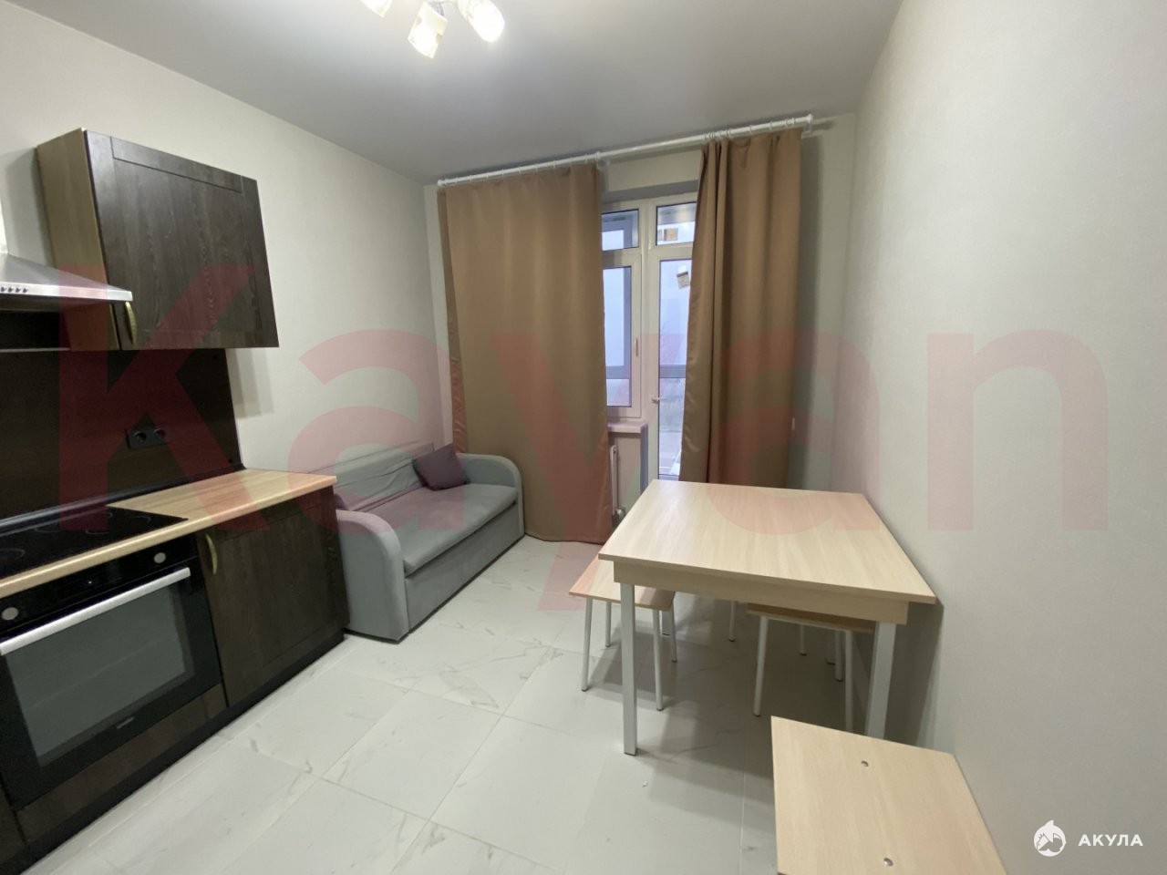 Помещение оснащено необходимой мебелью, спальные места - двуспальная кровать и диван. Установлена бытовая техника: двухкамерный холодильник, стиральная машина-автомат, встроенная кухонная мебель, духовой шкаф, варочная панель, вытяжка. Установка сплит-системы в лето обговаривается.