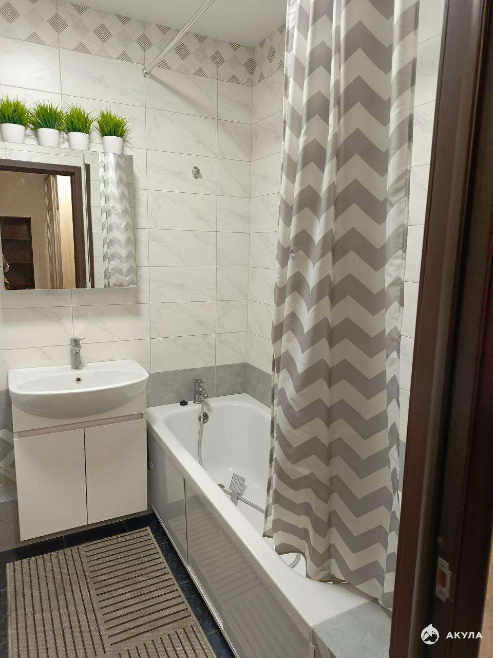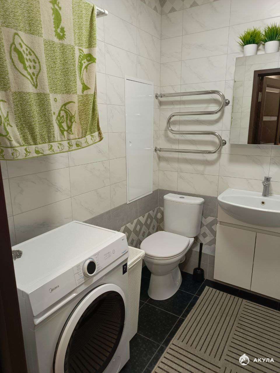 Все необходимое для комфортного проживания уже есть в квартире: бытовая техника, сантехника и мебель. В комнате установлена двуспальная кровать. Ванная комната совмещенная.