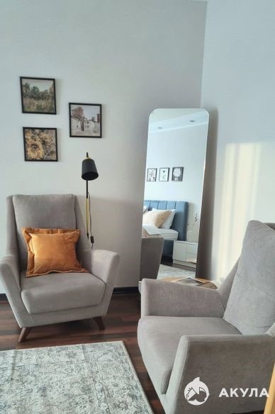 Привлекательная квартира оформлена в очаровательном винтажном стиле. Стены и мебель окрашены в мягкие приглушённые тона, пол выполнен из натурального дерева, вечернее освещение создаёт тёплую и интимную атмосферу, а зелёные растения наполняют интерьер жизнью. Винтажные элементы декора подчёркивают палитру цветов и привлекают внимание к деталям, создавая неповторимую атмосферу умиротворённости и домашнего тепла. Кровать в спальне оборудована прикроватной тумбой и мягким ночником, обеспечивая здоровый и комфортный сон. Компактный рабочий стол позволяет трудиться или отдыхать в приятном домашнем окружении — идеальный вариант для тех, кто работает дистанционно. Просторный гардероб в гостиной и компактный комод помогут аккуратно разместить всю одежду и личные вещи. Гостиная станет прекрасным местом для приёма друзей и близких, позволяя насладиться приятным общением в приятной обстановке. А кухня вдохновляет на кулинарные эксперименты благодаря стильному кофейному столу и изящному кухонному гарнитуру. Ванна просторная, оснащена удобной шторкой, здесь царит тишина и покой. Бесшумная стиральная машина, функциональная раковина с вместительными шкафчиками и зеркало дополняют удобство пространства.