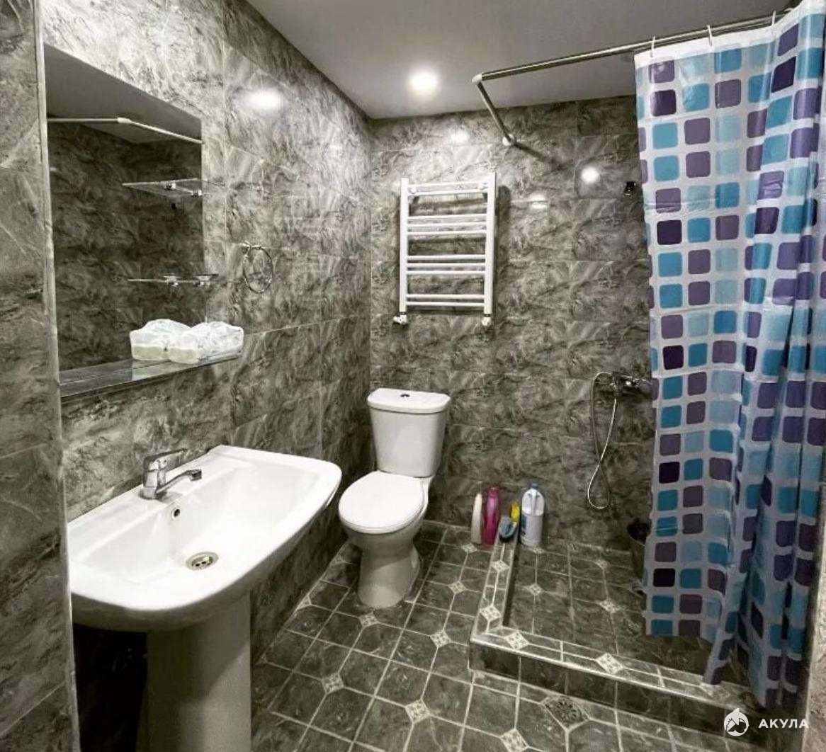 Все необходимое для комфортного проживания уже есть в квартире: бытовая техника, сантехника и мебель. В комнате установлена двуспальная кровать. Ванная комната совмещенная.
