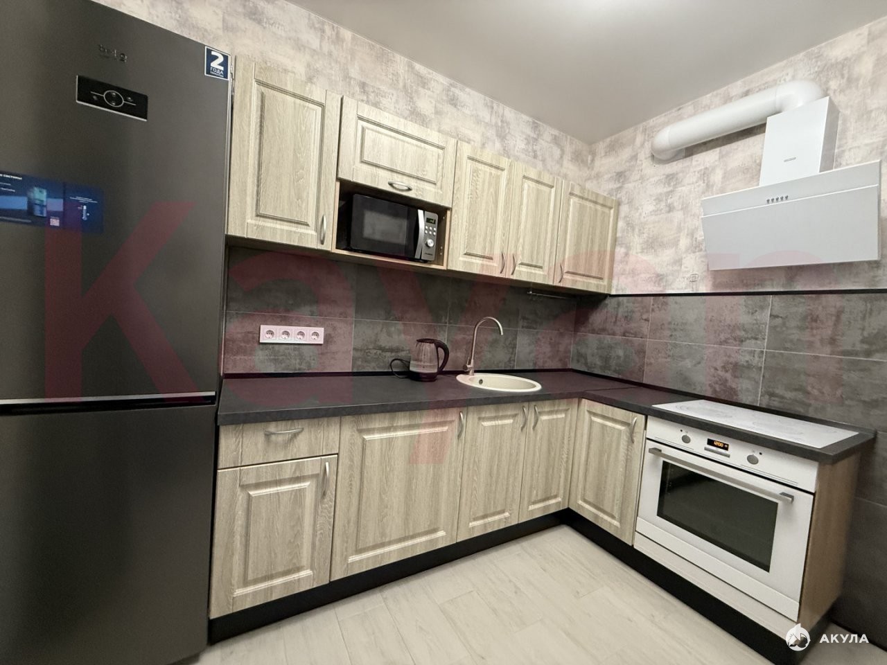 Имеется вся необходимая мебель, из бытовой техники: стиральная машина-автомат, 2-х камерный холодильник, электроплита, стиральная машина, сплит система, проведен скоростной интернет.