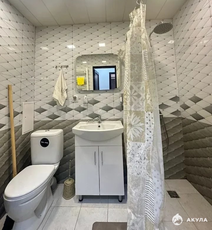 Все необходимое для комфортного проживания уже есть в квартире: бытовая техника, сантехника и мебель. В комнате установлена двуспальная кровать. Ванная комната совмещенная.