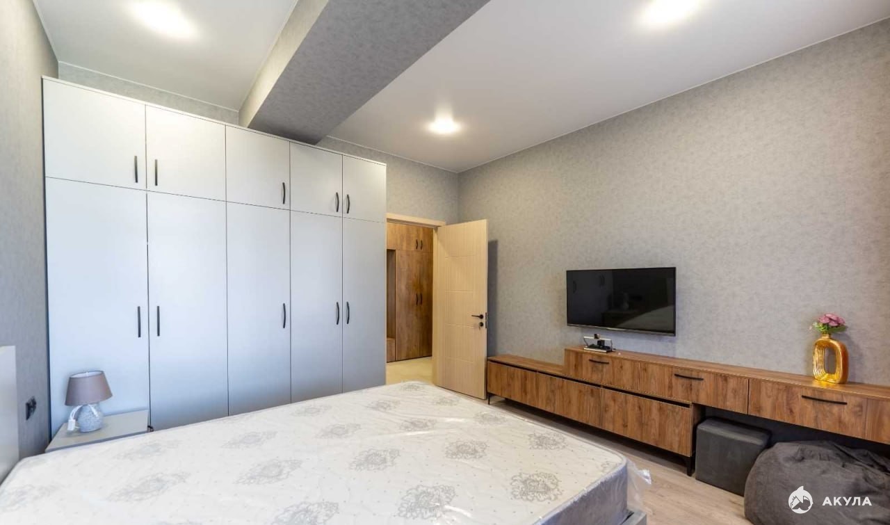 В спальне оборудована встроенная гардеробная система для рационального хранения вещей и учебных материалов. На стене напротив кровати установлен телевизор для отдыха, а естественное освещение создает комфортные условия для занятий.